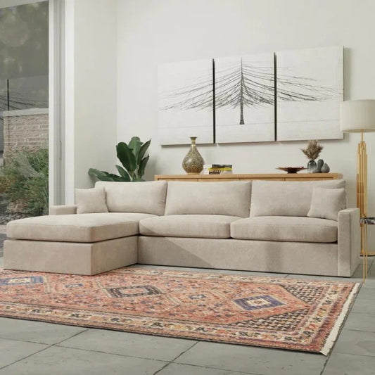 L Shape Sofa Set: Sturdy Steel Springs and Kiln-Dried Wood