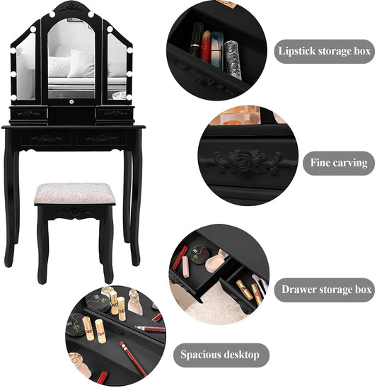 Dressing Table: Black Tri-Folding Lighted Mirror and 10 LED BulbsRegular price Rs. 34,999.00Regular priceUnit price / perRs. 49,999.00Sale price Rs. 34,999.00Sale