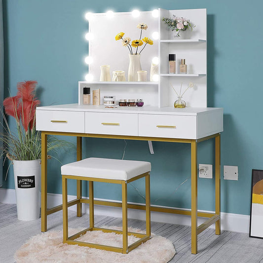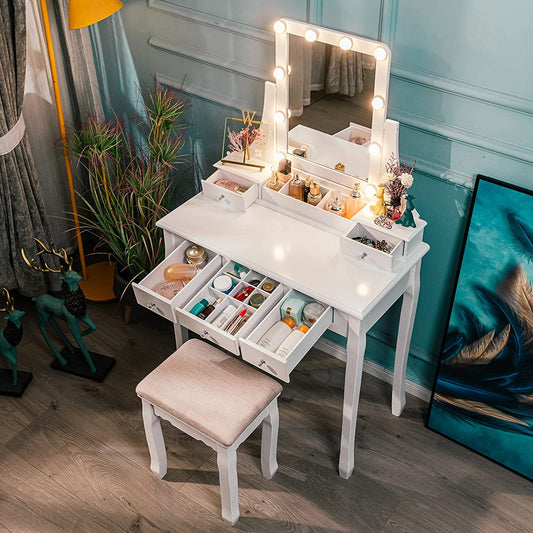 Dressing Table : White Vanity Set with 10 LEDs Lighted Mirror & Makeup Table with Padded Cushioned StoolRegular price Rs. 35,999.00Regular priceUnit price / perRs. 49,999.00Sale price Rs. 35,999.00Sale