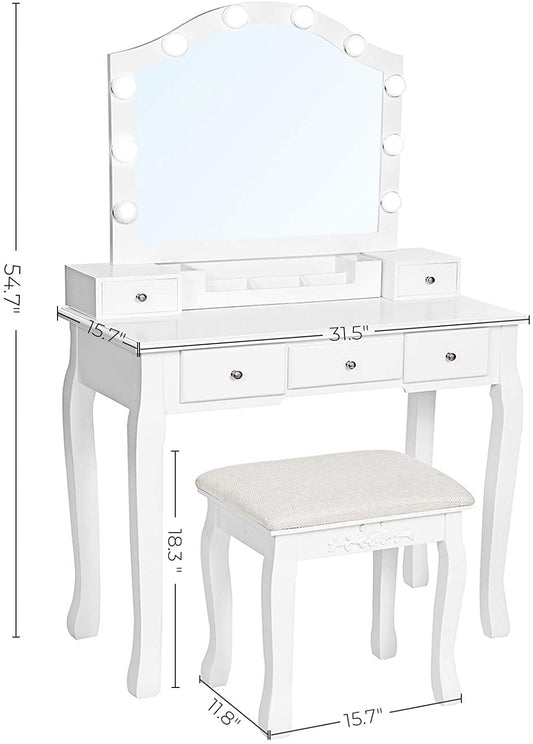 Dressing Table: White Dressing Table with Mirror & 10 Light BulbsRegular price Rs. 33,999.00Regular priceUnit price / perRs. 47,999.00Sale price Rs. 33,999.00Sale