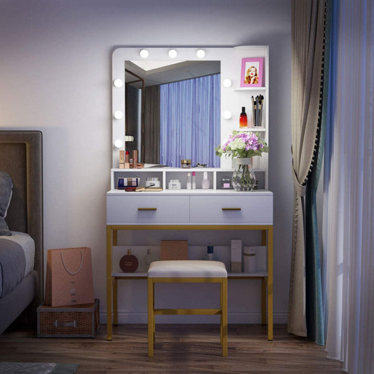 Dressing Table: Mirror, 10 Light Bulbs, 6-Slot Removable White Dressing TableRegular price Rs. 35,999.00Regular priceUnit price / perRs. 49,999.00Sale price Rs. 35,999.00Sale