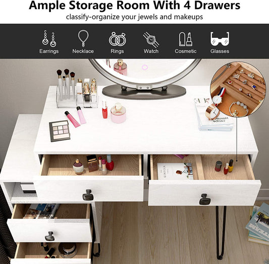 Dressing Table : White Vanity Set with Lighted Mirror & 10 LED Bulbs 4 Drawers 2 DIY DividersRegular price Rs. 35,499.00Regular priceUnit price / perRs. 48,999.00Sale price Rs. 35,499.00Sale