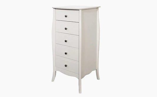 Chest of Drawers: White Tall Narrow 5 Drawer Chest of DrawersRegular price Rs. 15,999.00Regular priceUnit price / perRs. 26,999.00Sale price Rs. 15,999.00Sale