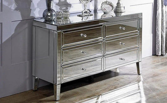 Chest of Drawers: Mirrored 6 Drawer Chest of Drawers