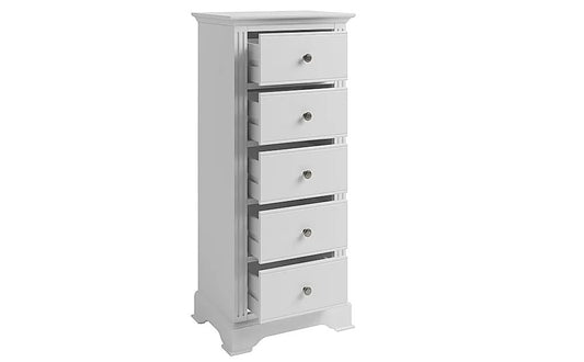 Chest of Drawers: White Tall Narrow 5 Drawer