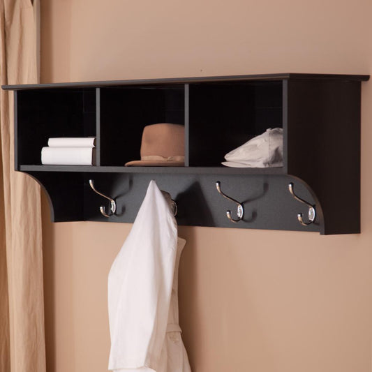 Hall Trees: Black Triple Cubby Bench & Coat Rack Set