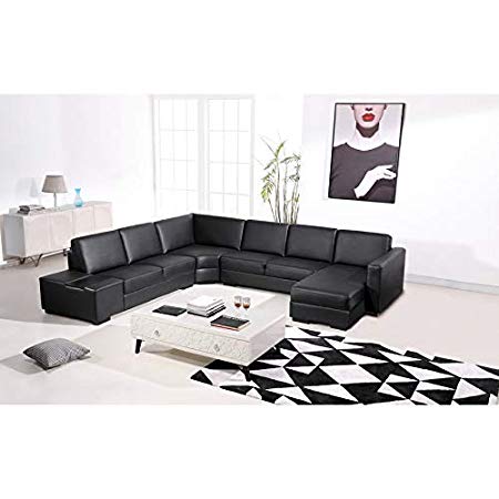 U Shape Sofa Set: Leatherette Sectional Sofa Set (Black)