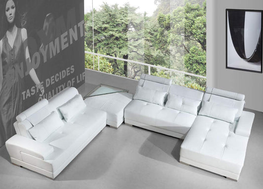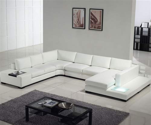 U Shape Sofa Set: White Ottoman Leatherette Sectional Sofa Set