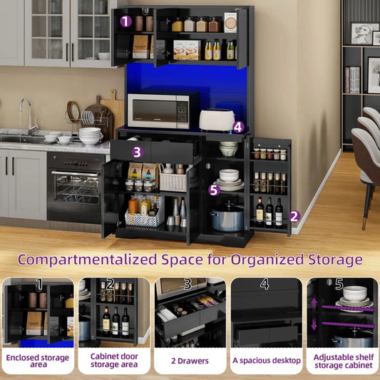 Microwave Stands :"77.4-Inch" Kitchen Storage Cabinet with Microwave Stand