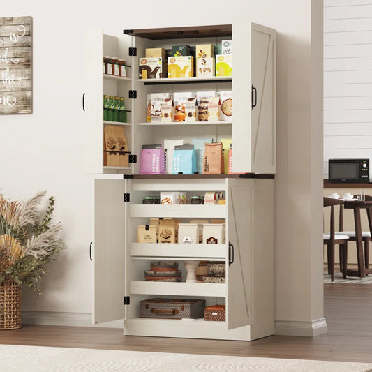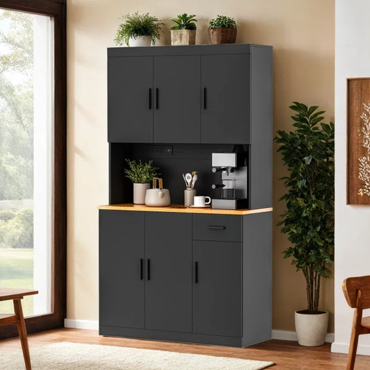 Microwave Stands:74.8" Large Wood Kitchen Pantry with Microwave Stands