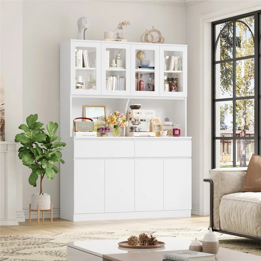Microwave Stands: 70.9" Glass Door Kitchen Hutch with Microwave Stand