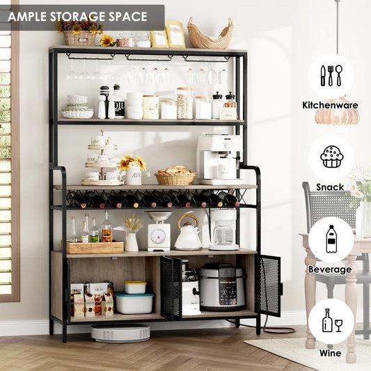 Microwave Stands: Microwave Stands Used for Kitchen Storage – 47.2" Bakers Rack with Outlet & Hooks