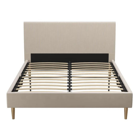 Double Bed: Upholstered Low Profile Standard Bed With Storage