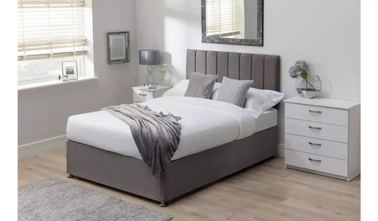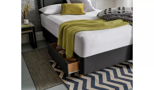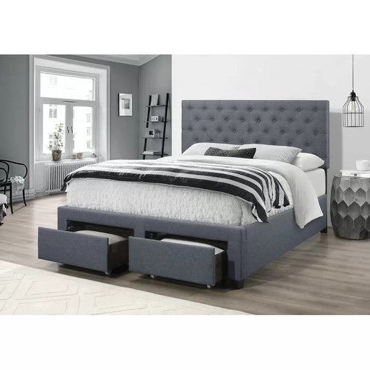 Double Bed: Slate grey 2 Drawer Double Bed With Storage