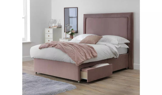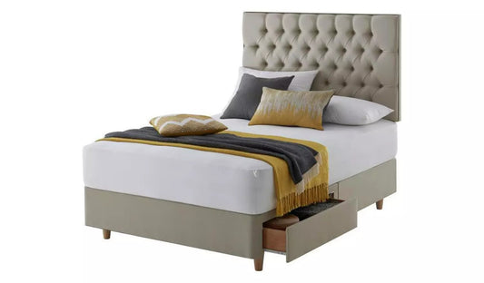 Double Bed: Luxurious Fabric 2 Drawer Double Bed With Storage