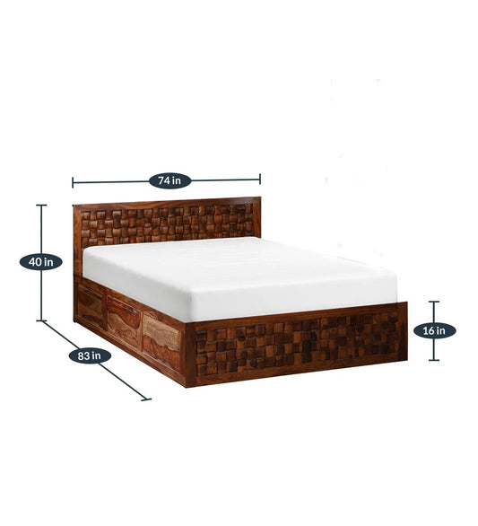 Sheesham Furniture: King Size Double Bed with Front and Top Storage in Honey Oak