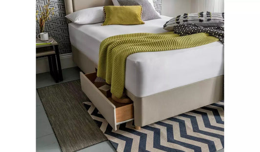Double Bed: Sandstone Small Double Bed With Storage Drawer