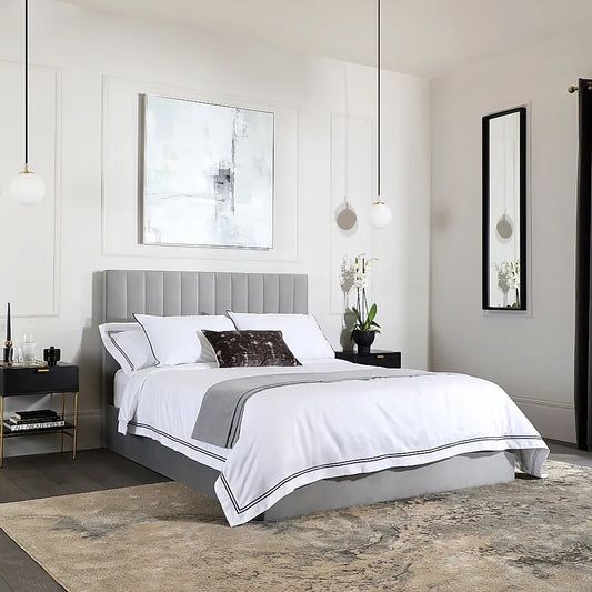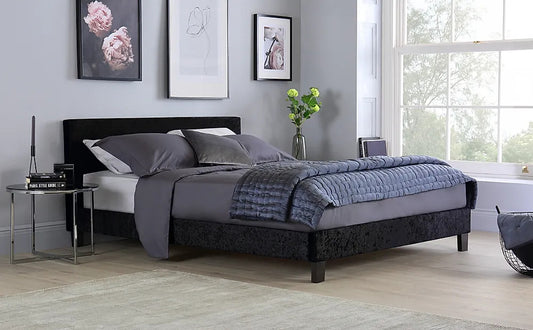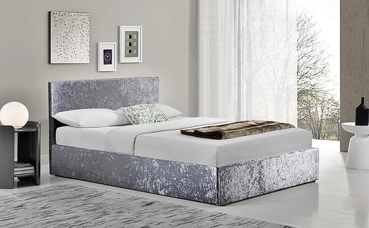 King Size Bed: Silver Crushed Velvet King Size Bed