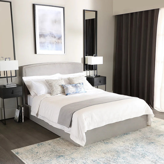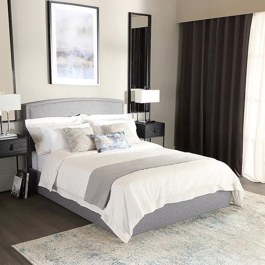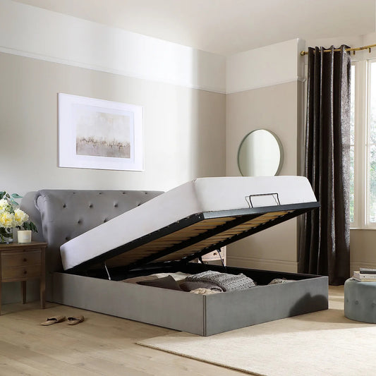 King Size Bed: Upholstered Grey King Size Double Hydraulic Bed