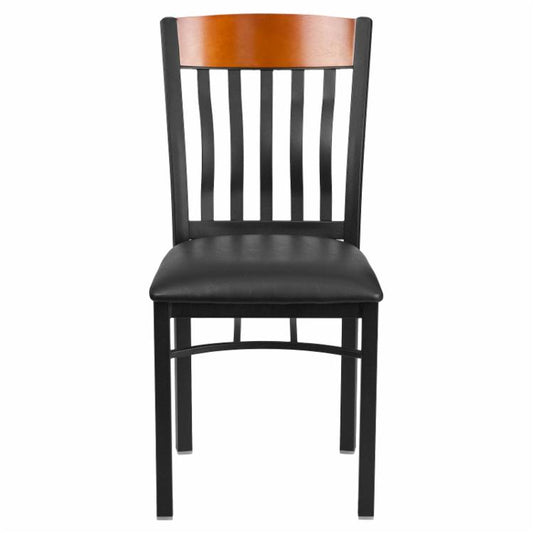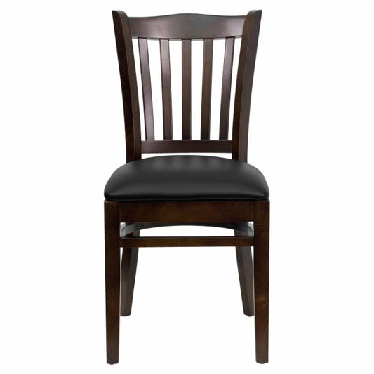 Cafe Chair: 19.25 in. Walnut Vertical Slat Back Restaurant Chair