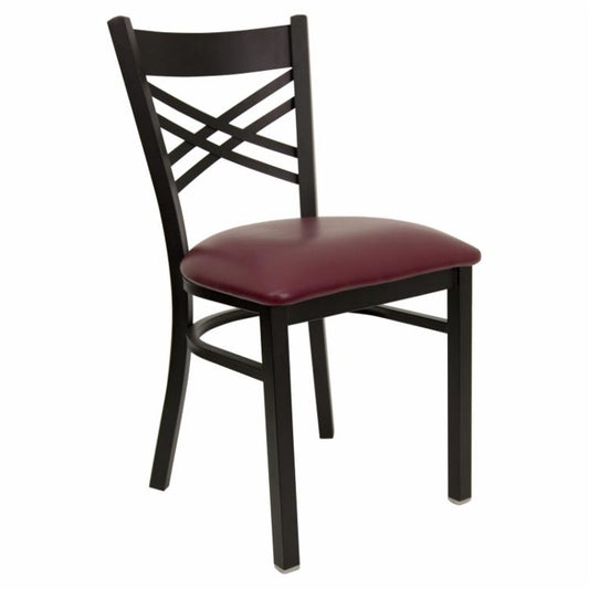 Cafe Chair: 19.5 in. Black Metal and Viny Restaurant Chair