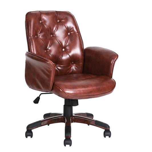 Office Chair : Upholstered Brown Faux Leatherette Office Chair