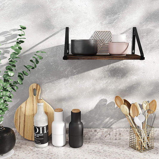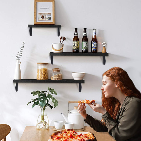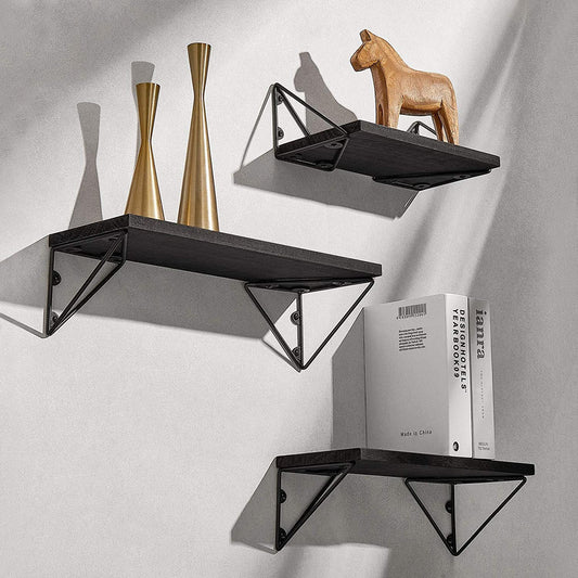 Wall Shelves: Decor Set of 3 for Bathroom, Living Room, Kitchen, Office, Laundry Room, Original Wood (Black)
