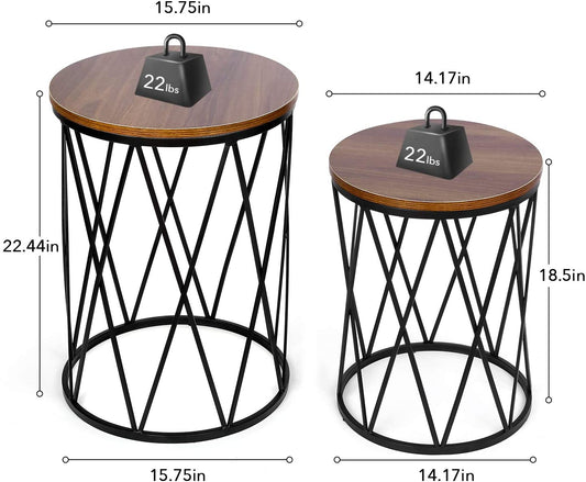 Nest Of Tables: Set of 2 Industrial Nesting Coffee Tables with Wood and Metal Frame, Modern Nightstand for Living Room Office, Easy to Storage