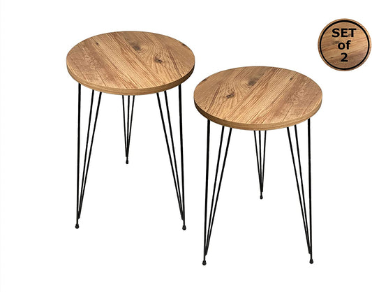 Nest Of Tables: Tables for Small Spaces, Nightstand Table with Metal Legs for Living Room, Office, Balcony - Sturdy & Easy Assembly, Pine Wood