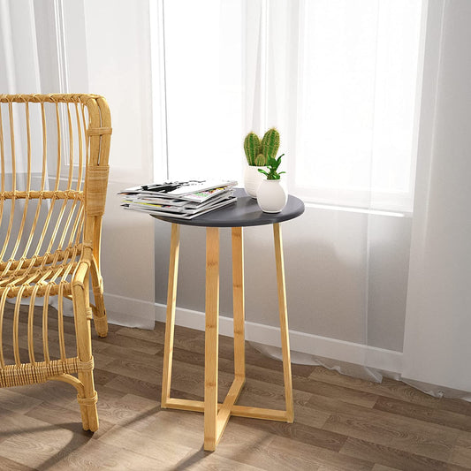 Side Table: Modern Nightstand Round Side End Accent for Living Room Balcony Family and Office in Grey