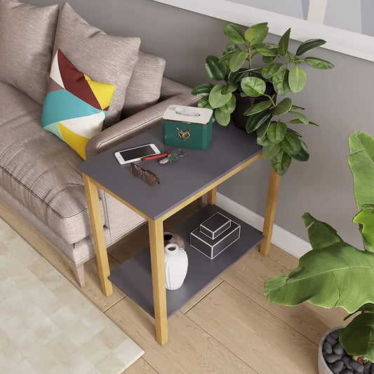 Side Tables: Storage Shelf for Living Room Balcony Family and Office in Grey Color