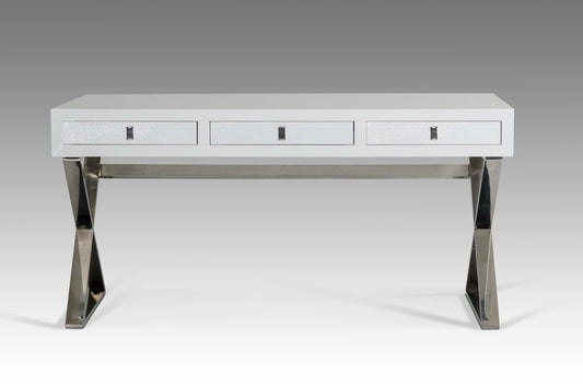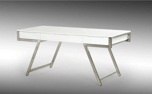 Office Desk: White & Stainless Steel Office Desk
