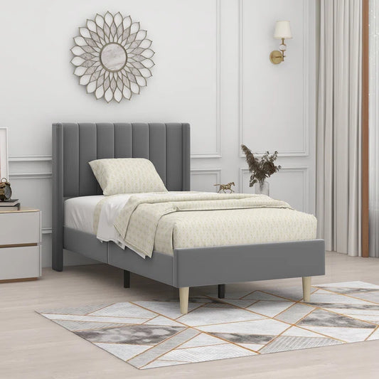 Queen Size Bed: Velvet Upholstered Platform Bed with Headboard
