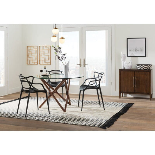 A round glass top Round dining table provides a fabulous look to our dining table. Round glass top dining looks amazing with traditional chairs. Velvet chairs are looking with round tables.