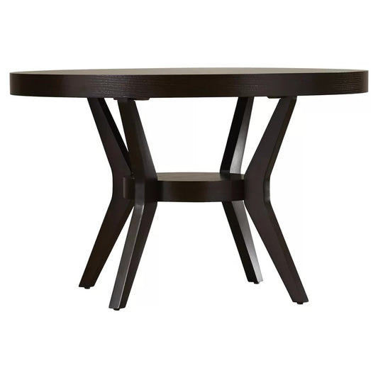 This wooden Round dining table has unique kind designs. With tan color dining, you can add light brown or same color chairs.