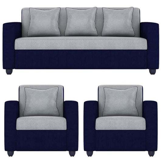 5 Seater Sofa Set: 3+1+1 Fabric Sofa Set (Light Grey-Dark Blue)