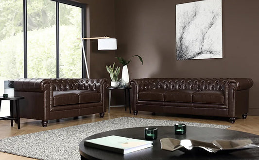 Chesterfield Sofa Set: Chestnut Leatherette 3+2 Seater Sofa Set