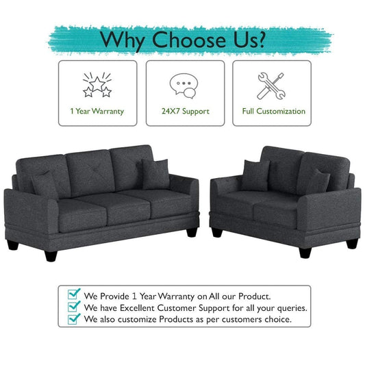 5 Seater Sofa Set: Combination of 3 & 2 Seating Sofa Set (Dark Grey)
