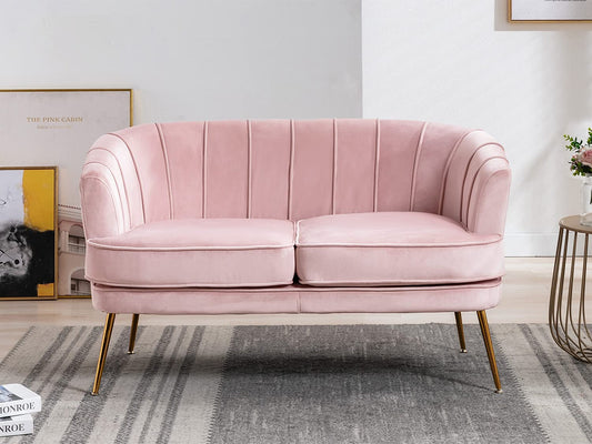2 Seater Sofa : Light Pink Velvet Lounge Couch