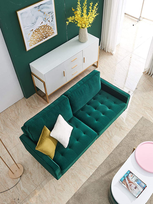 Loveseat: 70'' Velvet Square Arm Loveseat Sofa