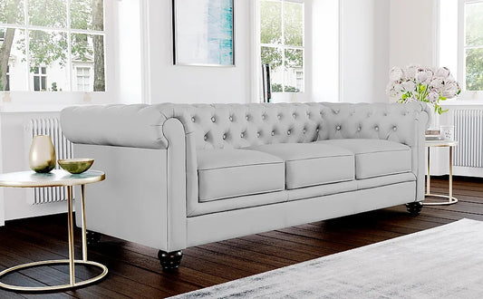 Chesterfield Sofa Set: Light Grey Leatherette 3 Seater Sofa Set