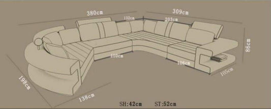 Modern Sofa Set: Leatherette 6 Seater Sofa with Side Storage