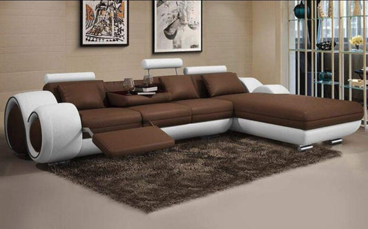 L Shape Sofa Set:- Minimalist Modern Leatherette Luxury Furniture Sofa Set (Brown and White)