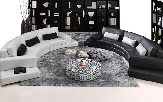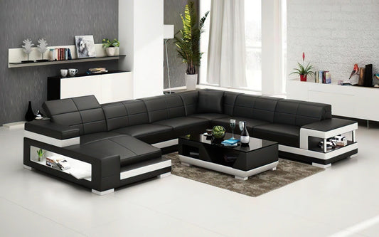 U Shape Sofa Set:- Modern Arc-Shaped Hardwood Leatherette Sofa Set, Standard (White and Black)