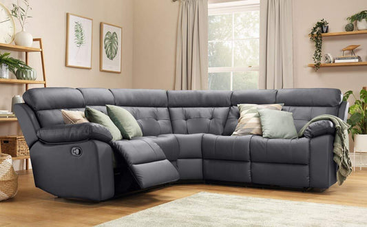 L Shape Sofa Set:- Recliner Corner Leatherette Sofa Set (Grey)