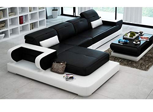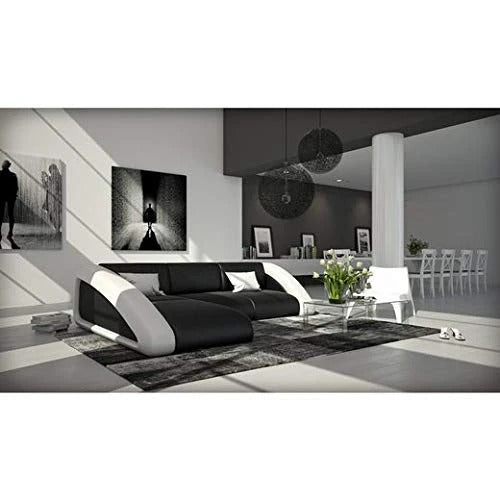L Shape Sofa Set:- Amida Lounge Leatherette Sofa Set (Black & White)