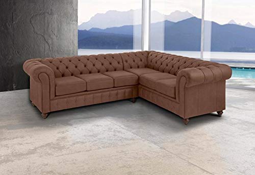 L Shape Sofa Set:- Bellem Hardwood Leatherette Sofa Set (Tan Brown)