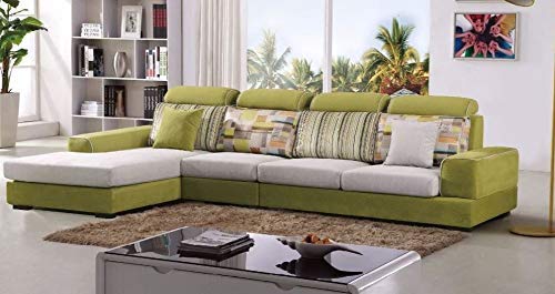 L Shape Sofa Set:- Fabric Sofa Set, Standard Size (Pear Green and Off White)