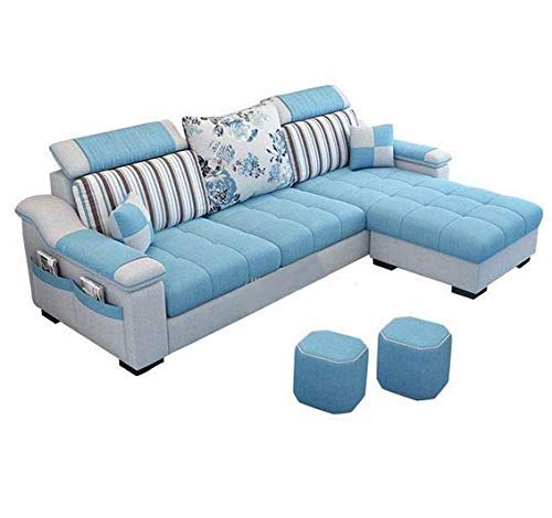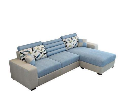 L Shape Sofa Set:- Fabric Sofa Set in (Sky Blue & White)