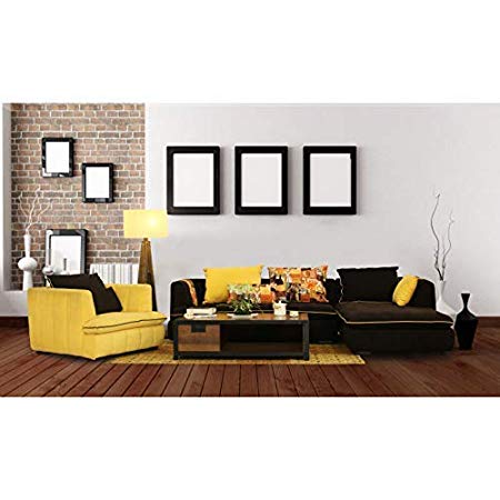 L Shape Sofa Set:- Leonard Hardwood Fabric Sofa Set (Yellow & Dark Grey)